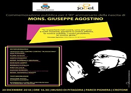 Il 20 dicembre 2018 alle ore 16.30 presso il Museo di Pitagora si terrà la Commemorazione Pubblica per il 90° anniversario della nascita di Mons. Giuseppe Agostino promosso dal Comune di Crotone e dal Consorzio Jobel